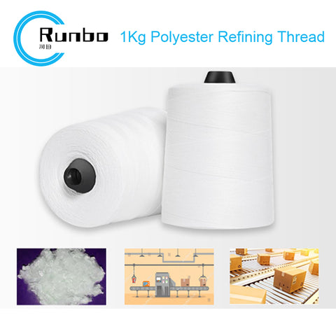 Polyester Refining Sewing Thread can be used in many factories, like wheat flour mill, maize mill, rice mill, cement factory, and different kind of bag sewing with sewing machines. The sewing thread is high strength fiber, strong, white, acid and alkali resistance, non toxic and harmless, no mildew, no moth. One roll is around 1Kg, one box is 24 rolls