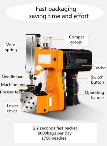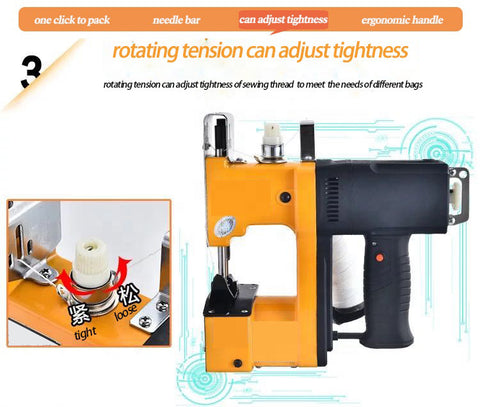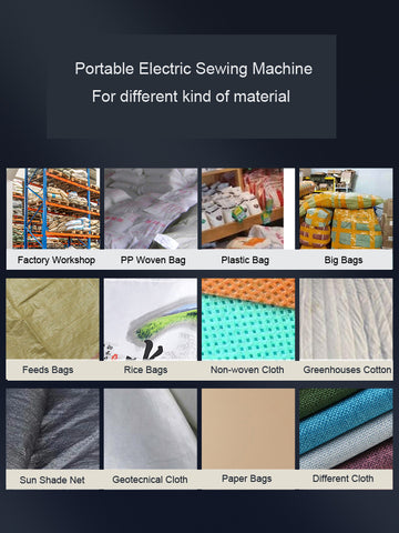 The portable electric sewing machine has a wide range of applications and supports various industries. The sewing machine is a device for sewing plastic woven bags, paper bags, paper-plastic composite bags, aluminum-coated paper bags and other bags with thread. It is mainly used to complete the stitching and sewing of bags or woven fabrics.